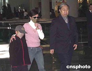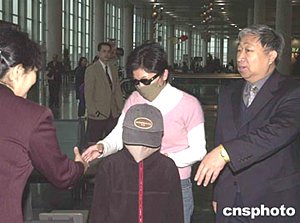 中新社海口一月十九日電(記者王辛莉)涉嫌在瓊從事間諜活動的臺灣人宋孝濂的妻子曾靖媛和兒子宋睿庭,今天下午搭乘澳門至?陲w機,于傍晚六點零五分抵達?诿捞m機場,希望能探視正在此間拘押的嫌犯。晚六點五十分,宋孝濂妻兒緩緩步出機場,其妻曾靖媛戴著墨鏡,九歲的兒子宋睿庭戴著大口罩和帽子。臺灣媒體TVBS記者隨機抵達?凇