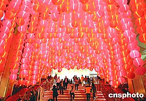 春節(jié)臨近,江蘇走街串巷的貨郎趁著年關(guān)人們購(gòu)置年貨的機(jī)會(huì),扛著高高的氣球穿行于街道,等待著買(mǎi)賣(mài)的到來(lái)。中新社記者:高遠(yuǎn)