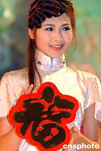 中國(guó)傳統(tǒng)農(nóng)歷新年將至,中國(guó)各地呈現(xiàn)出一派過年氣氛,在一臺(tái)時(shí)裝展示會(huì)上模特手捧新春福字喜氣洋洋向人們祝福。作者:錢興強(qiáng)