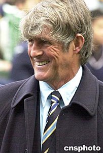前任中國國家足球隊主帥米盧,元月二十二(農(nóng)歷年初一)帶領(lǐng)洪都拉斯國際足球隊參加在香港舉行的“2004嘉士伯杯”邀請賽,圖為米盧神采奕奕出現(xiàn)在香港大球場受到球迷注目。 作者:錢興強
