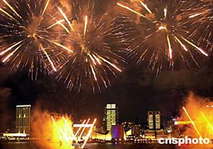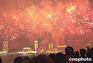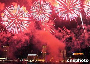 除煙花匯演外,香港新界工商業(yè)總會還在會展中心舉行新春酒會,行政長官董建華、中央政府駐港聯(lián)絡(luò)辦副主任周俊明、外交部駐港特派員楊文昌等出席今晚的活動。
