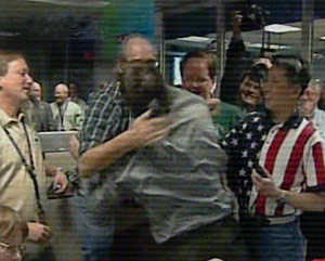 美國(guó)宇航局(NASA)宣布,美國(guó)“機(jī)遇”號(hào)火星探測(cè)器于格林尼治時(shí)間25日5:05分(北京時(shí)間13:05時(shí))成功在火星表面登陸。(以上均為電視截圖)