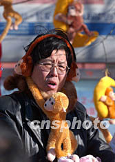 春節(jié)期間,北京各大廟會(huì)熱鬧非凡,一名賣猴玩具的小販正忙碌著在廟會(huì)上淘金!鞍萆瘛①(gòu)物、娛樂(lè)”是人們逛廟會(huì)的主要活動(dòng),廟會(huì)上旺盛的人氣帶動(dòng)了獨(dú)特的廟會(huì)經(jīng)濟(jì)。中新社記者:張煒