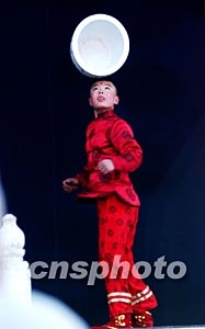 一名十歲的山西兒童春節(jié)期間在北京廟會(huì)上從容表演雜技“頂壇”。據(jù)悉,在中國民間有許多孩子從五歲左右開始習(xí)練雜技藝術(shù),小小年紀(jì)便已身懷“絕技”。中新社記者:王麗南