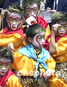 香港時代廣場元月二十七日舉行十周年慶典活動,為隆重其事特安排“甲申猴年金猴鬧獅賀新春”表演,圖為“群猴賀禧”。作者:錢興強(qiáng)
