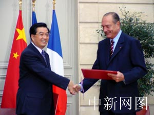 圖:胡錦濤和希拉克簽署“中法聯(lián)合聲明”