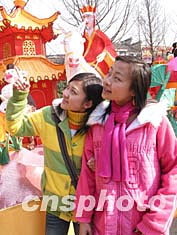 一月二十八日(正月初七),兩名學生在南京夫子廟游玩時,被“鬧元宵”的花燈所吸引。一年一度的十五鬧花燈活動即將拉開帷幕,各地的扎燈藝人紛紛亮出絕活,扎出一組組形態(tài)各異的花燈,以饗游客。作者:丁東升