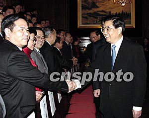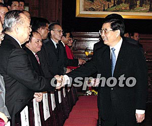 正在法國進行國事訪問的中國國家主席胡錦濤,二十八日下午來到中國駐法國大使館,親切會見了六十多位華僑華人代表,并通過他們向所有的旅法華僑華人拜年。作者:蔚中
