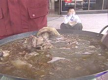 據(jù)臺灣媒體報道,天冷正是吃姜母鴨的最佳時節(jié),但云林日前傳出鴨只傳染禽流感疫情,不少民眾心生恐懼,連姜母鴨業(yè)者都遭到池魚之殃,生意一落千丈。目前云林業(yè)者煮了一鍋一鍋的姜母鴨,免費請大家吃,借著縣長的大力促銷,希望走出禽流感的陰霾。