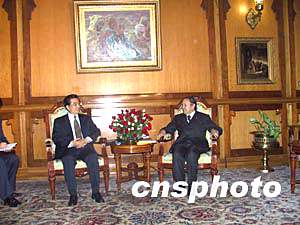 三日下午,胡錦濤抵達(dá)阿爾及爾,開始他此次歐非四國(guó)之行的最后一站。傍晚,當(dāng)胡錦濤來到位于阿爾及爾市郊穆拉迪高地的總統(tǒng)府時(shí),總統(tǒng)府儀仗隊(duì)持槍敬禮,軍樂隊(duì)奏起歡迎曲。在胡錦濤檢閱了總統(tǒng)府儀仗隊(duì)后,等候在門前的布特弗利卡迎上前去,與胡錦濤熱烈握手歡迎。這是自去年法國(guó)埃維昂南北領(lǐng)導(dǎo)人非正式對(duì)話會(huì)后,胡錦濤同布特弗利卡的第二次會(huì)晤。