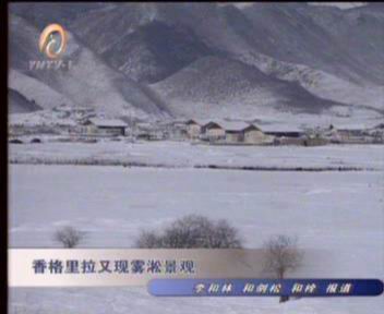 報道說,由于香格里拉早晚空氣的溫度差異較大,而形成了這種特有的霧淞現(xiàn)象。而香格里拉海拔較高,空氣流動速度快,即使有太陽的時候,溫度仍然可以保持在一個特定范圍之內(nèi),因而對霧淞的較長時間存在創(chuàng)造了必要的溫度條件。