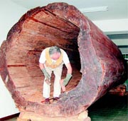 據(jù)聯(lián)合晚報報道,張松樹說,這棵超級臺灣紅檜原木,長8.2米,直徑2.43米,重達(dá)數(shù)噸,陳姓原主人利用臺灣紅檜超大樹干中空,布置一張床,兩頭掛蚊帳,有空便在天然芬多精的原木中睡覺,吸取樹木精華。