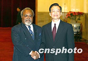 溫家寶闡述了中國(guó)政府在臺(tái)灣問題上的立場(chǎng),并對(duì)巴新政府和索馬雷總理本人堅(jiān)持一個(gè)中國(guó)政策給予高度評(píng)價(jià)。
