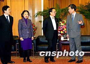 香港政務(wù)司司長(zhǎng)曾蔭權(quán)(右二)、律政司司長(zhǎng)梁愛詩(右三)、政制事務(wù)局局長(zhǎng)林瑞麟(左一)等一行二月十日與全國(guó)人大常委會(huì)法工委副主任李飛會(huì)面。這是政制發(fā)展專責(zé)小組北京之行的最后一項(xiàng)官方活動(dòng)。中新社記者:鄭萍萍