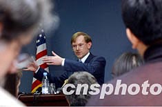 美國貿(mào)易代表佐利克二月十二日在北京舉行新聞發(fā)布會,就世貿(mào)組織新一輪多邊貿(mào)易談判等相關(guān)問題回答中外記者提問。中新社記者:武仲林