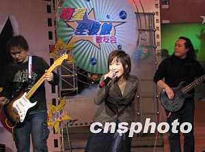 2月13日下午,亞洲搖滾新天后斯琴格日樂在山西太原電視臺“明星全接觸”舞臺上高歌。作者:張云