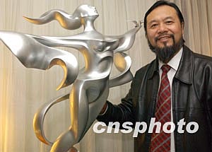 為紀念諾曼底登陸六十周年,應法國諾曼底政府的邀請,由中國著名藝術家遙遠先生創(chuàng)作的巨型雕塑作品《世界和平女神》,將于2004年6月6日紀念諾曼底登陸六十周年活動期間聳立在法國諾曼底登陸的中心位置。圖為近日遙遠先生在香港向傳媒介紹他的雕塑作品《世界和平女神》(模型)的藝術創(chuàng)作過程及感想。作者:錢興強