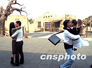二月十四日情人節(jié),深圳歡樂谷舉行“唇唇欲動,KISS有禮,99朵玫瑰送愛人”接吻大賽活動,十多對情侶激情上場擁吻,歡度節(jié)日。作者:陳文