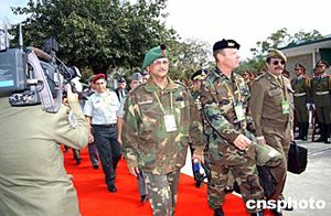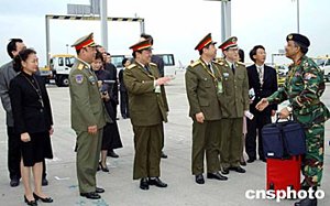 上午十一時三十分,以英國駐華武官科爾準(zhǔn)將為團(tuán)長的武官團(tuán)乘坐一架解放軍空軍專機(jī)抵達(dá)香港國際機(jī)場,受到廣州軍區(qū)、國防部、香港駐軍、香港特區(qū)政府有關(guān)負(fù)責(zé)人的熱情迎接。