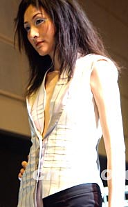 “2004香港教育及職業(yè)博覽會”二月十九日在香港會展中心開幕,圖為模特展示職業(yè)服飾作品。 作者:錢興強