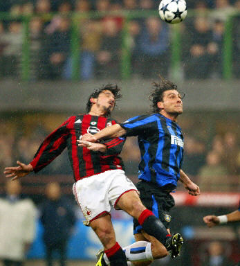 本場比賽,AC米蘭隊隊長馬爾蒂尼因禁賽未能上場,卡福擔當防守重任。AC米蘭隊開局打得不錯,但首先破門得分的卻是國米隊。塞黑球員斯坦科維奇發(fā)出的角球直接飛入球門遠角。兩分鐘后扎內蒂25米外起腳勁射破門。上半場國米隊已經確立了兩球的優(yōu)勢,看到了勝利的曙光。