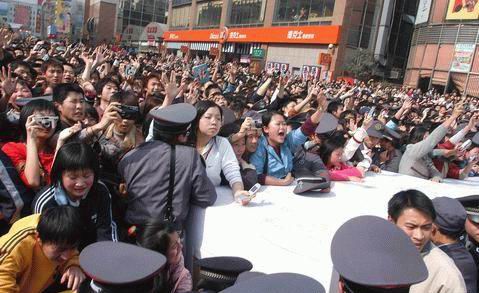 臺(tái)灣人氣小天后蕭亞軒昨(22)日亮相成都宣傳某彩妝品牌時(shí),引發(fā)歌迷騷亂。上萬名瘋狂的歌迷在蕭亞軒出現(xiàn)在春熙路步行街后,沖破300多名保安和警察組成的人墻,將現(xiàn)場的記者席沖得七零八落,蕭亞軒嚇得歌未唱完就被經(jīng)紀(jì)人攔腰抱出包圍圈匆匆離去。雖然現(xiàn)場負(fù)責(zé)人及時(shí)中止了活動(dòng),最終仍有一名男歌迷因現(xiàn)場太亂被擠倒在地,好幾名女生的鞋子也被擠丟在了現(xiàn)場。