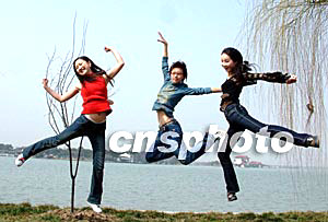 2月26日,來自江蘇、上海、安徽等地的38名優(yōu)秀選手齊聚常熟,進行為期三天的2004年國際旅游小姐江蘇賽區(qū)總決賽。圖為參賽選手在尚湖風景區(qū)進行外拍。作者:蔣振江