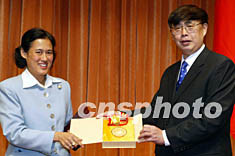 中國(guó)人民對(duì)外友好協(xié)會(huì)會(huì)長(zhǎng)陳昊蘇,二月二十六日在北京向泰國(guó)詩(shī)琳通公主授予“人民友好使者”稱號(hào),以褒獎(jiǎng)她多年來為發(fā)展泰中友好關(guān)系作出的突出貢獻(xiàn)。中新社記者:毛建軍