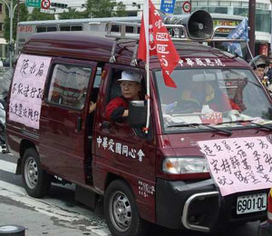 游行自下午1時(shí)許開始,參加民眾分乘160多輛汽車,車上插著旗幟、貼著標(biāo)語(yǔ),上書“愛中華,反‘臺(tái)獨(dú)’,反戰(zhàn)爭(zhēng),要和平”、“拒領(lǐng)公投票,否決違法公投”等字樣。車隊(duì)從中華路與成都路交界處出發(fā),浩浩蕩蕩穿行臺(tái)北市區(qū)主要街道,最后匯集到臺(tái)灣當(dāng)局領(lǐng)導(dǎo)人的辦公場(chǎng)所前。游行民眾在這里高喊口號(hào),書寫標(biāo)語(yǔ),表示抗議。