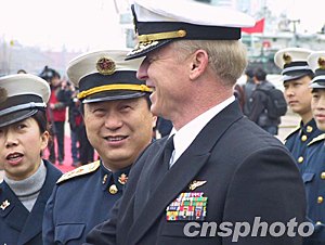 據(jù)悉,“藍(lán)嶺”號(hào)指揮艦訪滬期間,威拉德一行拜會(huì)了海軍東海艦隊(duì)司令員趙國(guó)鈞中將和上海市副市長(zhǎng)馮國(guó)勤,美艦官兵參觀了中國(guó)自行研制的導(dǎo)彈護(hù)衛(wèi)艦,游覽了上海市容,中美海軍官兵還舉行了軍樂(lè)表演交流和籃球友誼比賽等一系列聯(lián)誼活動(dòng)。