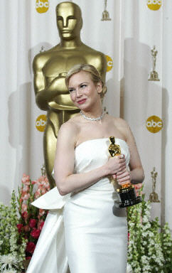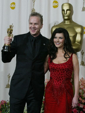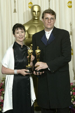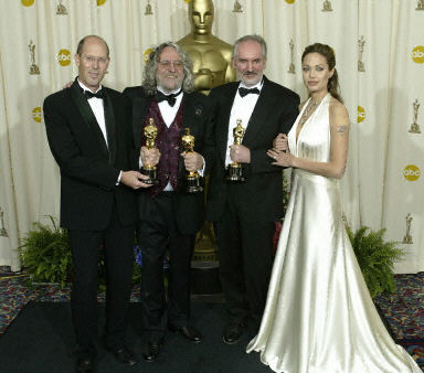 《指環(huán)王3:王者回歸》獲最佳美術(shù)指導(dǎo)獎,安吉麗娜·朱莉為三位美術(shù)指導(dǎo)頒獎。