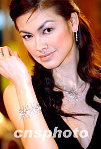 香港名模ROSEMARY,3月4日在時(shí)代廣場(chǎng)舉辦的“SPARKLING WOMEN”首飾展上,展示2004春夏最新首飾系列。作者:洪少葵