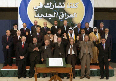在8日的儀式舉行之前,伊拉克管委會舉手表決,通過了臨時憲法。