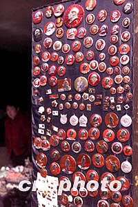 圖:眾多毛澤東像章在古鎮(zhèn)浙江西塘展示