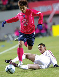 或者也可以說,高麗民族骨子里流淌的就是這種永不服輸?shù)难海跣〉拿褡灞澈罂傆锌嚯y的經(jīng)歷,而反抗就成了永恒的主題。反映在體育上,那就是對強(qiáng)者的追趕超越,不擇手段。在足球界,韓國足球在亞洲最早進(jìn)入職業(yè)化,韓國足球在20年前就強(qiáng)調(diào)體能訓(xùn)練,而中國足球到現(xiàn)在還在為YOYO測試洋洋自得,殊不知東施效顰,已失先機(jī)。