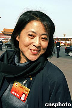 三月十二日,全國(guó)政協(xié)委員、央視名主播倪萍參加全國(guó)政協(xié)十屆二次會(huì)議閉幕式。作者:慎重