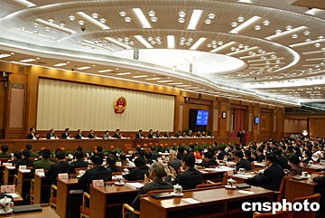 十屆全國人大二次會(huì)議主席團(tuán)今天下午舉行第三次會(huì)議,主席團(tuán)常務(wù)主席吳邦國主持會(huì)議。按照大會(huì)議程,這是本次人代會(huì)的最后一次主席團(tuán)會(huì)議。