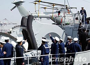 圖:中國(guó)海軍官兵參觀訪問(wèn)青島的法國(guó)軍艦