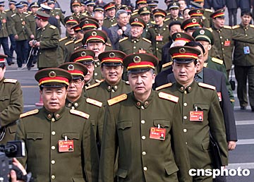 解放軍代表團(tuán)十四日在北京出席十屆全國(guó)人大二次會(huì)議閉幕式。中新社記者:史利