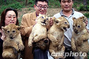 深圳野生動(dòng)物園自二月二日成為禽流感疫區(qū)后,已有四十二天閉門(mén)謝客,僅天鵝湖的治理就用去近二百?lài)嵥幤。解除封鎖后,十四日首次允許新聞媒體入園采訪(fǎng),十五日對(duì)外開(kāi)園迎客。圖為動(dòng)物園里剛滿(mǎn)月的四胞胎小獅子。作者:陳文