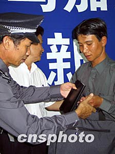 他介紹說自從公安部三月二日發(fā)布有關馬加爵的通緝令后,他始終留意這個信息。三月十五日晚七時左右他騎摩托車經過三亞河西岸,前往第一市場買菜。發(fā)現路邊有一男子在路邊垃圾桶翻撿別人丟棄的食物和飲料,他覺得此人相貌與通緝令上的照片非常想像,他立刻與到處都粘貼的通緝令對照,認為比較確定。在與馬犯對視的過程中,他還發(fā)現此人在裝瘋并且走路一瘸一拐。他立刻騎摩托前往三亞河西派出所報案。