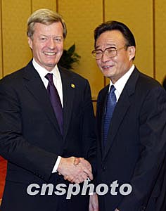 在會見美國參議員鮑克斯時(shí),吳邦國說,中美關(guān)系總體發(fā)展良好,兩國領(lǐng)導(dǎo)人保持著密切對話與交往。雙方在經(jīng)貿(mào)、反恐、朝核等重要領(lǐng)域進(jìn)行了有效的磋商、協(xié)調(diào)與合作。這符合中美兩國和兩國人民的根本利益,也有利于世界的和平、穩(wěn)定與發(fā)展。