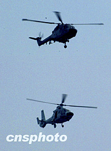 中法直升機(jī)在三月十六日的中法聯(lián)合軍事演習(xí)中進(jìn)行編隊(duì)?wèi)?zhàn)術(shù)演練。中新社記者:宋吉河