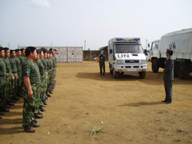 在歡迎儀式上,林大使向維和人員簡要介紹了當?shù)匦蝿莺椭欣p邊關系情況。指出,中利關系雖經(jīng)曲折,但兩國人民向來友好。2003年10月,中利復交為兩國開展在各個領域的友好合作奠定了政治基礎。中國政府將積極參加利和平進程和國家重建。