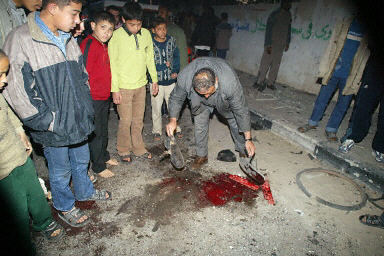 圖為巴勒斯坦警察在亞辛身亡的現(xiàn)場收查線索。