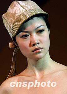 三月二十三日,在香港會展中心開幕的“2004香港國際春季時裝材料展”上,設計師推出的“迷彩”時裝帽別具特色。中新社傳真 錢興強 攝