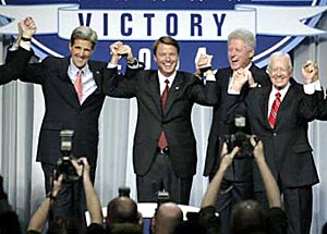 克里已獲得了他初選最強(qiáng)有力競(jìng)爭(zhēng)者前佛蒙特州長(zhǎng)迪安的支持。其它在初選與克里競(jìng)選的候選人如克拉克將軍、前北加利福尼亞愛德華茲參議員都已向支持者發(fā)去電子郵件,請(qǐng)求他們向克里的競(jìng)選活動(dòng)捐款。