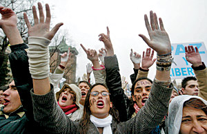 3月12日晚,西班牙4000萬人口中有1140萬人走上全國8000多個城市的街頭,抗議馬德里發(fā)生的系列恐怖爆炸事件。而歐洲的一些國家如法國、德國均降半旗以示哀悼。這讓人想起了9·11后法國媒體的大字標題“我們都是美國人!”同樣,全歐洲也在高呼“我們都是西班牙人!”。