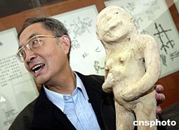 正在籌備性文化博物館開展儀式的劉達(dá)臨教授,四月十二日在江蘇同里鎮(zhèn)首次展示一尊新石器時(shí)代的陶制女神像。據(jù)劉教授介紹,這是目前中國發(fā)現(xiàn)最早的性文化雕塑,號稱“中國的維納斯女神”。從上海搬遷至同里的性文化博物館正在千年古鎮(zhèn)同里緊張籌備,將于本月十八日正式開館。中新社記者:毛建軍