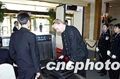四月十三日上午,美國副總統(tǒng)切尼訪華將下榻的北京國際俱樂部飯店開始對進入人員實施安檢,以確保安全。中新社記者:毛建軍